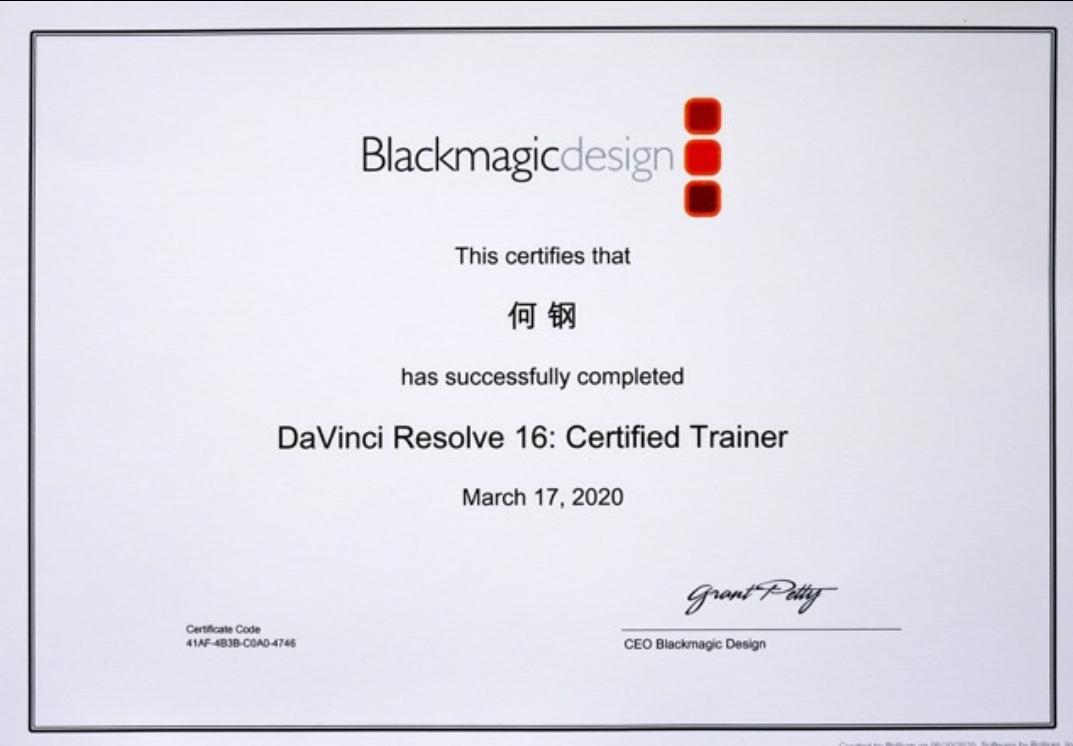 - DaVinci Resolve 国际认证证书
